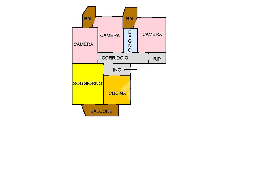Luminoso quadrivani in doppia esposizione. Ingresso, cucina e soggiorno con uscita su balcone su prospetto principale, tre ampie camere, bagno con box doccia e comodo ripostiglio.