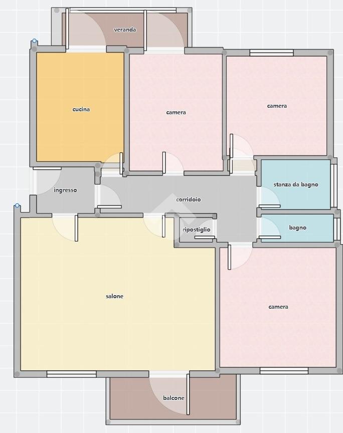 L'immobile, che si estende su una superfice ben distribuita, è composto da ampia sala d'ingresso, salone doppio, tre camere da letto matrimoniali, cucina abitabile ristrutturata da pochi anni, doppi servizi e ripostiglio.